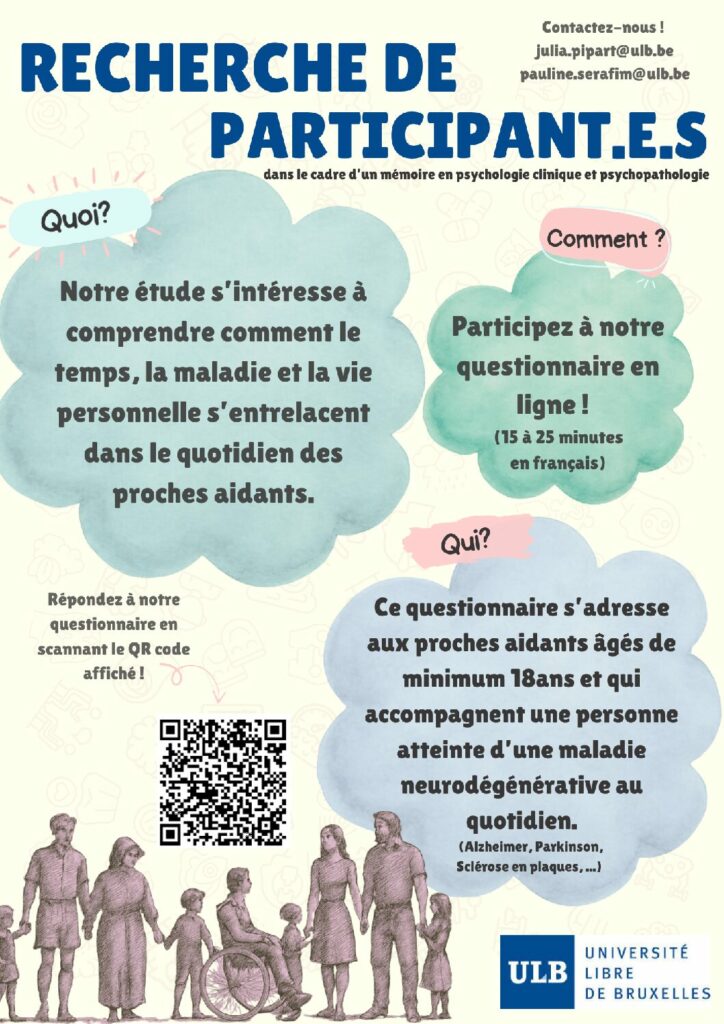 Comprendre le quotidien de l'Aidant.e Proche - Appel aux participants - Pipart & Serafim - ULB / Un souci avec le QR Code, le lien vers le site disponible sur demande par mail à info@parkinsonasbl.be